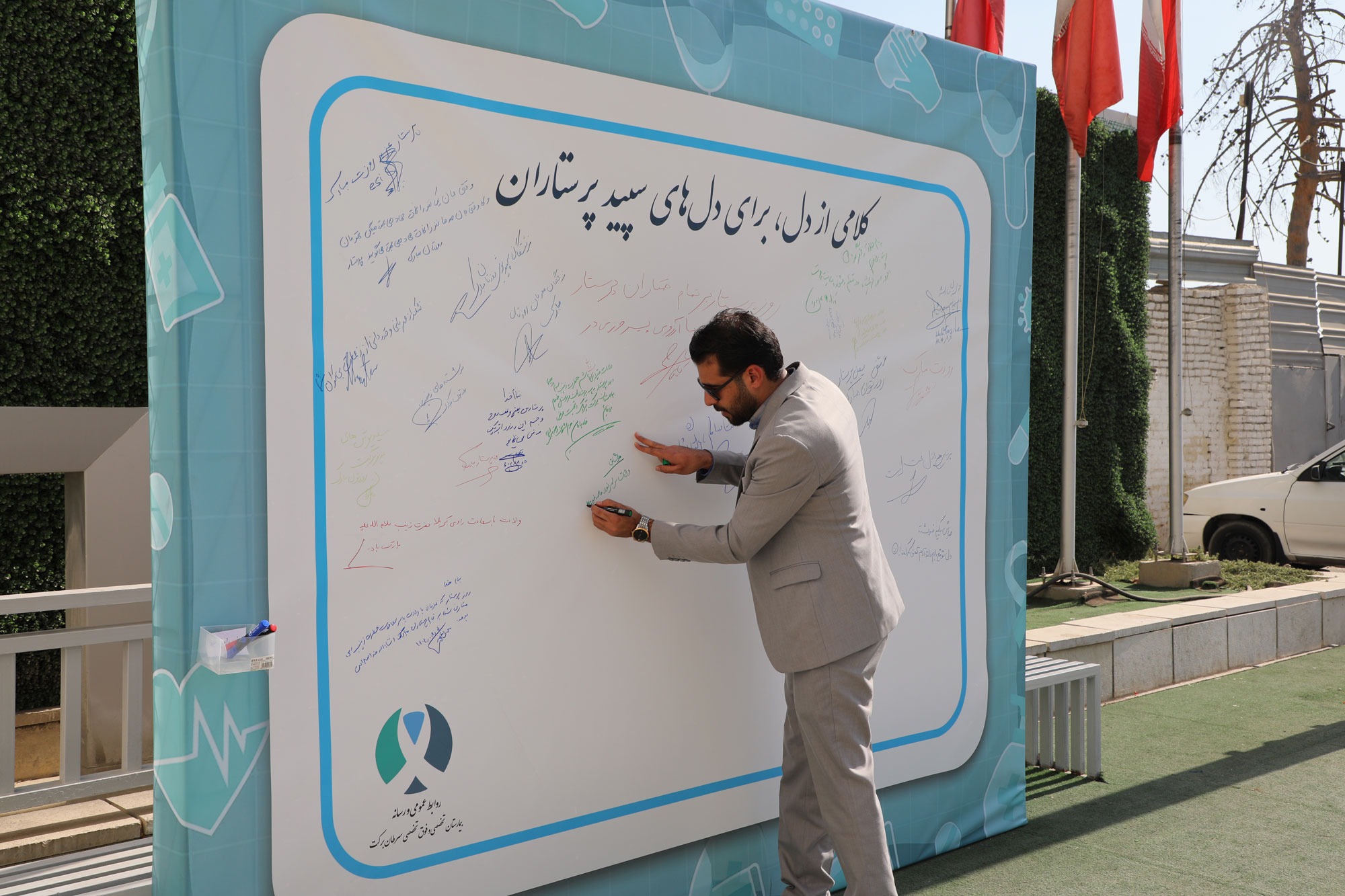 در پایان، دیوار تقدیر از پرستاران با شعار «کلامی از دل، برای دلهای سپید پرستاران» تکمیل شد؛ جایی که پزشکان، کارکنان، همراه بیماران و مهمانان مراسم، جملات سپاس و قدردانی خود را از پرستاران بر روی آن نوشتند.